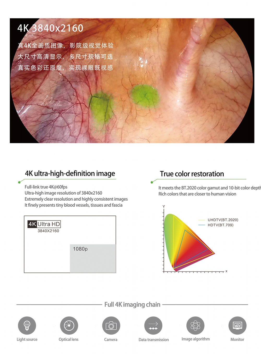 YSNJ‑FE4 Medical 4K Fluorescence Endoscope Camera System. Discover true 4K@60 fps, BT.2020 color, AI‑enhanced imaging & remote intraoperative sync for precise, efficient surgery.