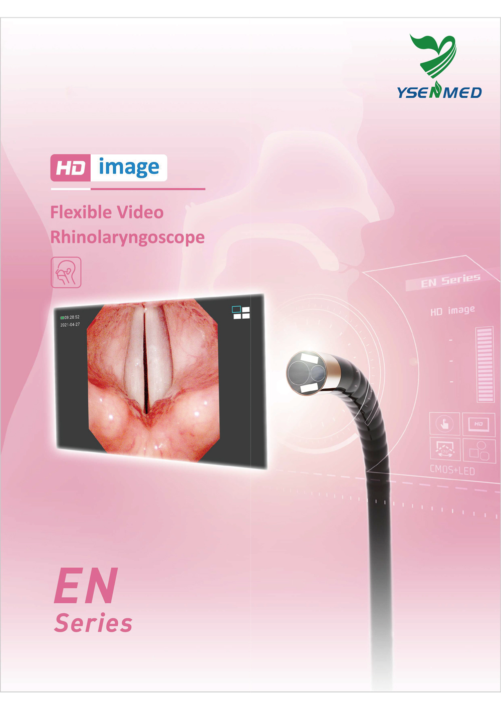 YSNJ-EN1049 adult video nasopharyngoscope with working channel features a slim 4.8mm insertion tube, CMOS+LED imaging, 90° FOV, multifunction controls, and optional integrated video monitor for ENT diagnostics and procedures.