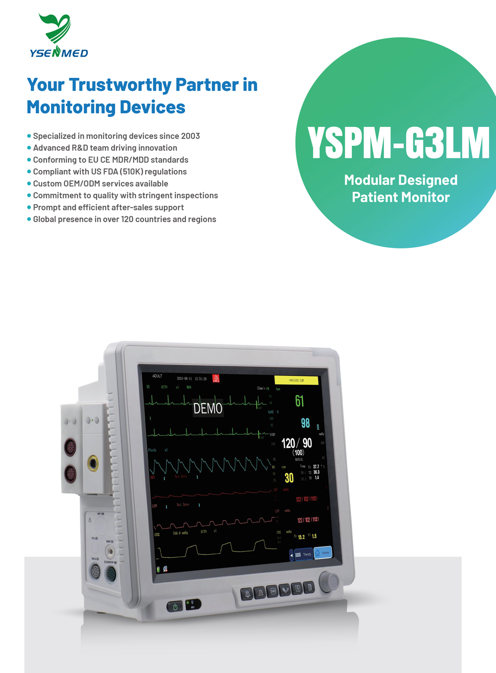 Garantía de precisión: El "sistema de equilibrio de deriva de corriente automática" garantiza la precisión, junto con patentes exclusivas para la estabilidad de la forma de onda de ECG y RESP de impedancia durante los procedimientos electroquirúrgicos;