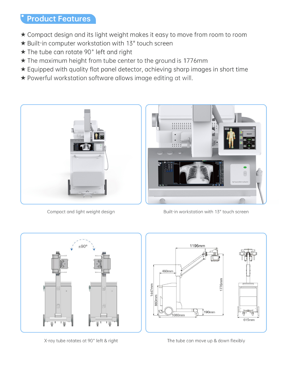 Máquina de rayos X digital móvil médica YSENMED de 5 kW YSX-mDR5B