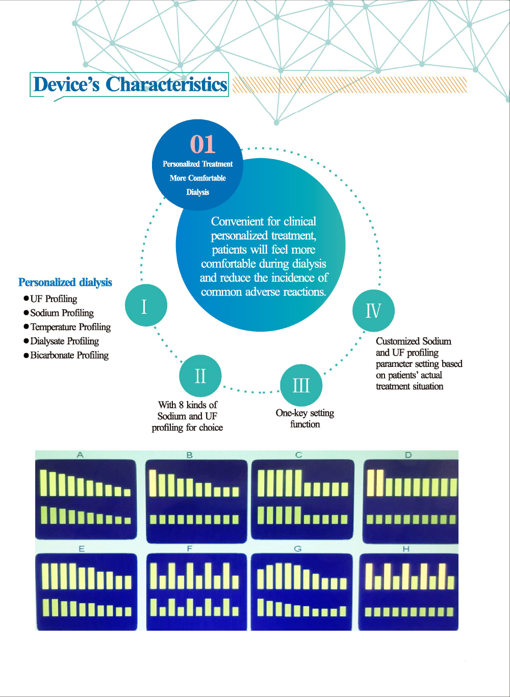 | HDF, BPM en línea, Bi-cart y 2 filtros de endotoxinas | |