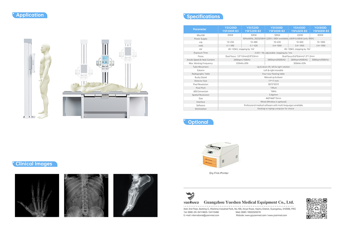 Équipement médical YSX500D(YSF50DR-B3) 50kW 630mA Système de radiographie numérique médical