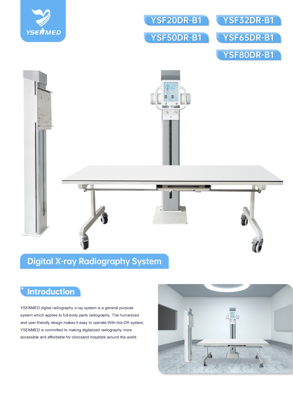 Le système de radiographie numérique YSENMED est un système polyvalent permettant la radiographie de l’ensemble du corps. Son design ergonomique et intuitif facilite son utilisation. Avec ce système DR, YSENMED s’engage à rendre la radiographie numérique plus accessible et abordable pour les cliniques et les hôpitaux du monde entier.