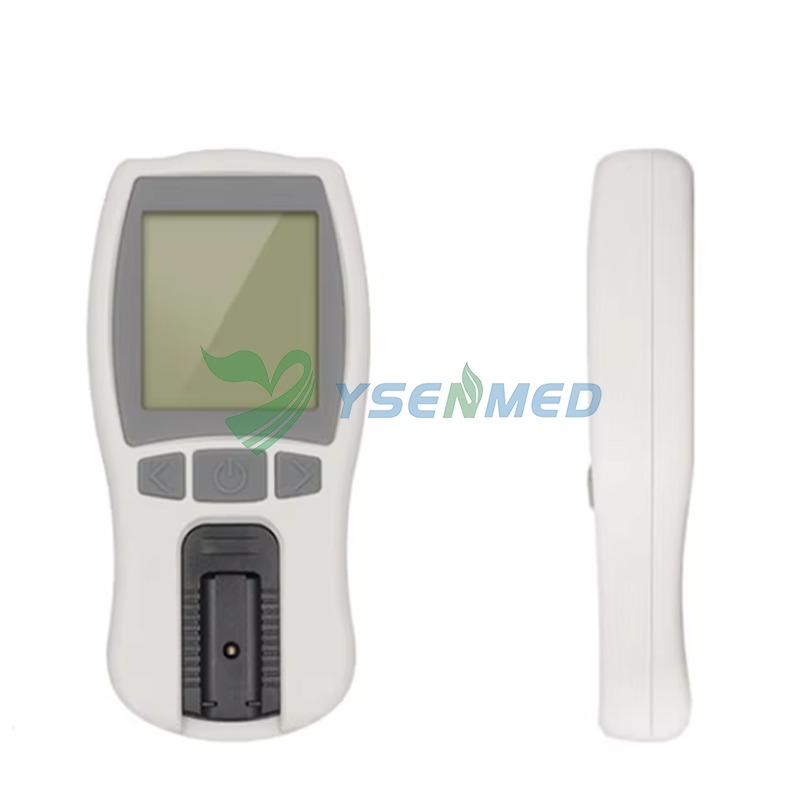 Portable device delivering fast, accurate HB & HCT results with auto‑calibration code chip and pre‑calibrated test strips.